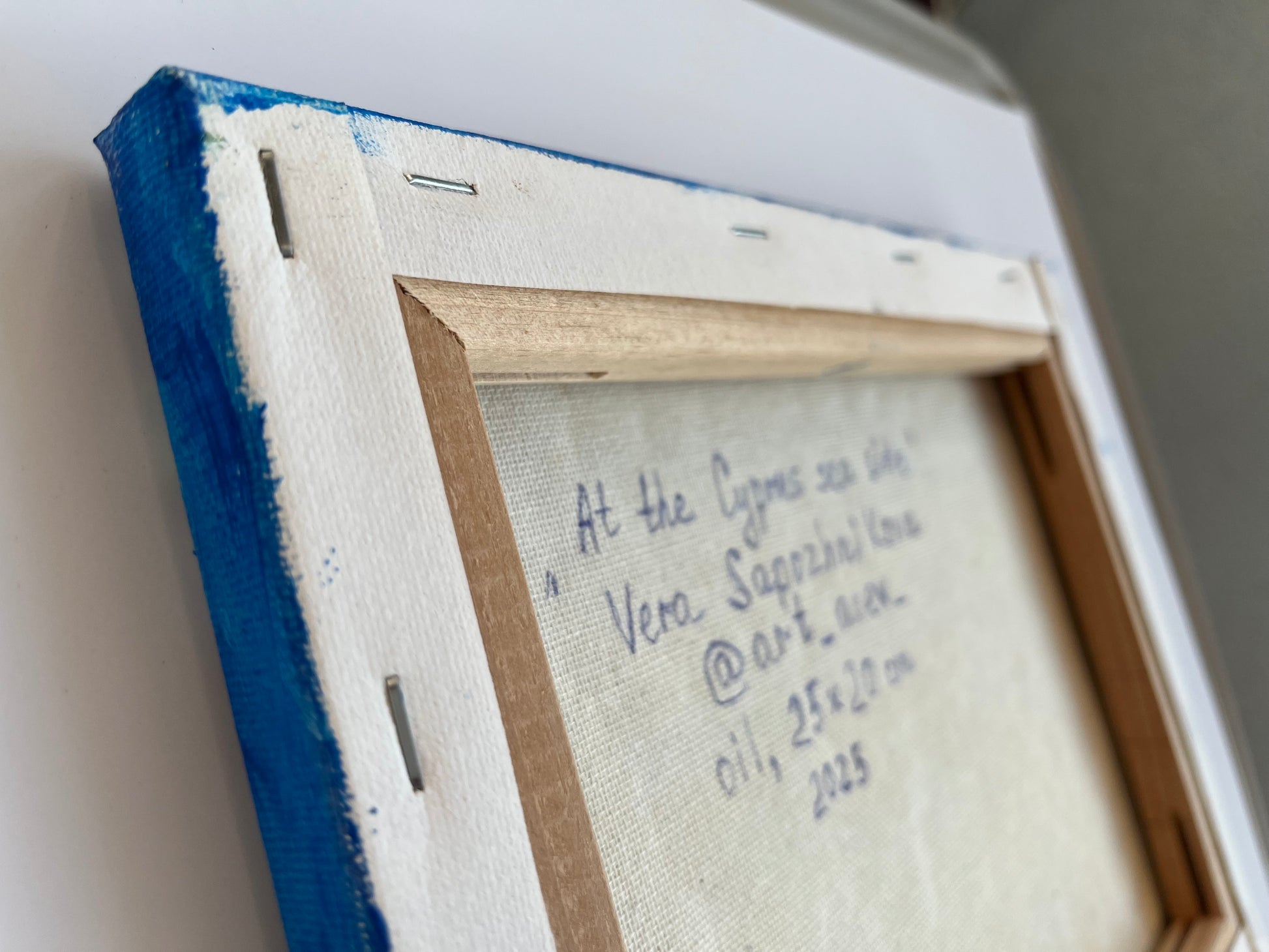 Sides of the stretched canvas are painted according to the colour scheme, so that you can decorate your room with the painting without frame. The painting is signed by the atrist