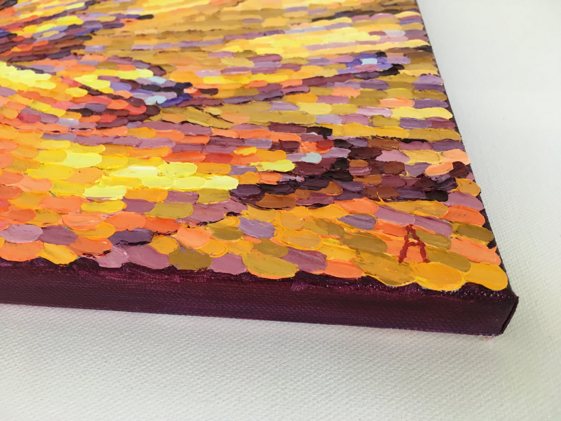 Sides of the stretched canvas are painted according to the colour scheme, so that you can decorate your room with the painting without frame. The painting is signed by the atrist